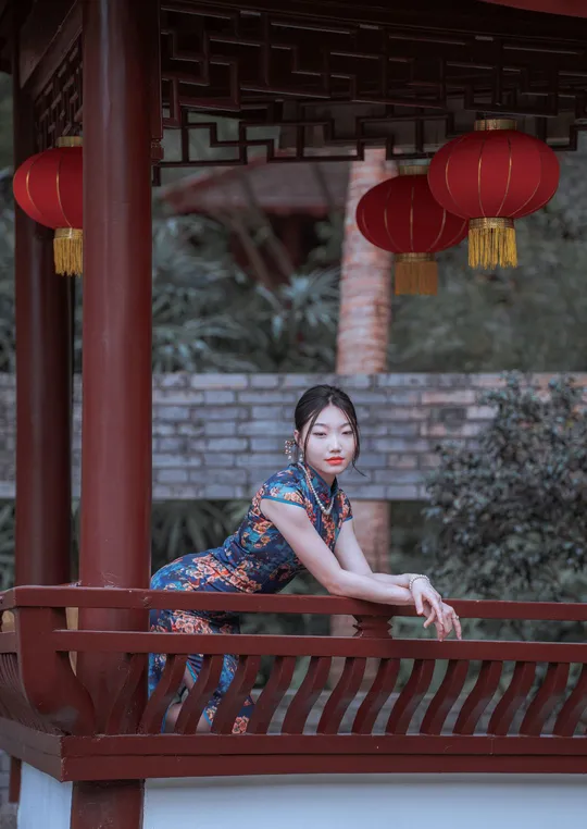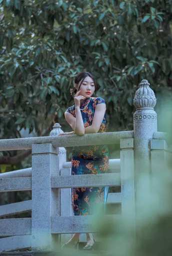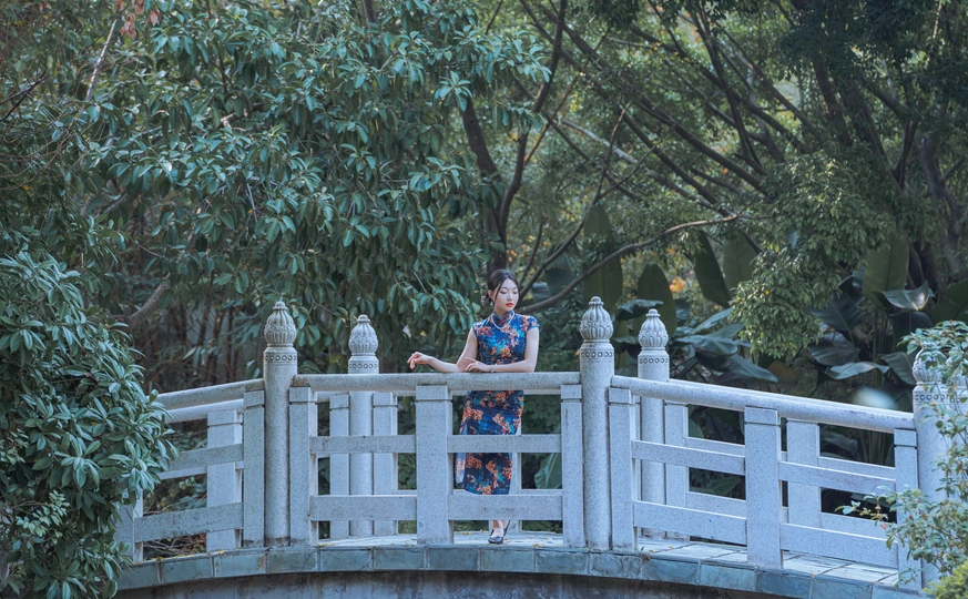 地点深圳园博园 小姐姐是个职业撸铁大佬,非常喜欢旗袍,第一次合照,还好没翻车,照片勉强算过关。小姐姐也不需要什么引导很多姿势动作信手拈来,非常棒的一次拍摄合作。