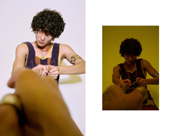 𝙂𝙊𝙇𝘿𝙀𝙉 𝙗𝙞𝙣𝙙𝙞𝙣𝙜 🔑 摄影:Rex 后期:Rex 美术指导:骆 造型:骆 化妆&发型:小朱 模特:韩世鑫 (𝙚𝙨𝙨𝙚英模) 场地:祁星文化 服装:𝙇𝙪𝙤'𝙨 𝙎𝙏𝙊𝙍𝙀