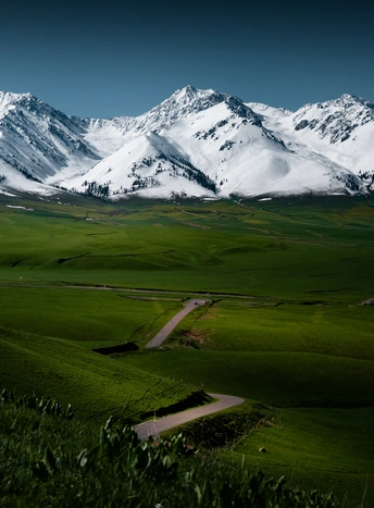 春天的那拉提大草原绿意盎然,雪山下野花盛开宛如仙境