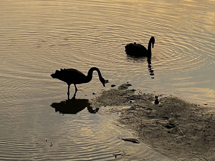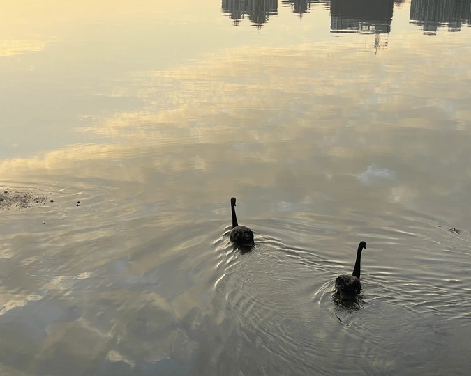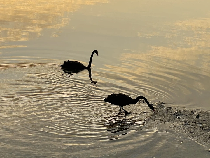 早晨麓湖的天鹅