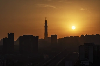 毗邻高铁线的小区楼顶,是看日出的好去处,脚下的铁轨延伸出去,一直到城市的参天大楼脚下。