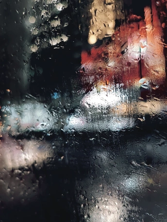 《落春的雪化作凡间的星》这组作品是在2023年3月郑州开始升温步入春天的时候,突然而且及意外的降下了一场鹅毛大雪,但因为地温高的原因,没有一片雪花能在落下后逃脱瞬间融化的命运。就这样融化的雪附着在玻璃上变成一颗颗凡间的星,抽象成一幅幅动人的画。
