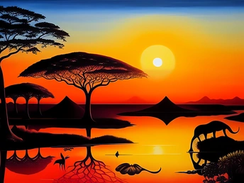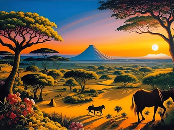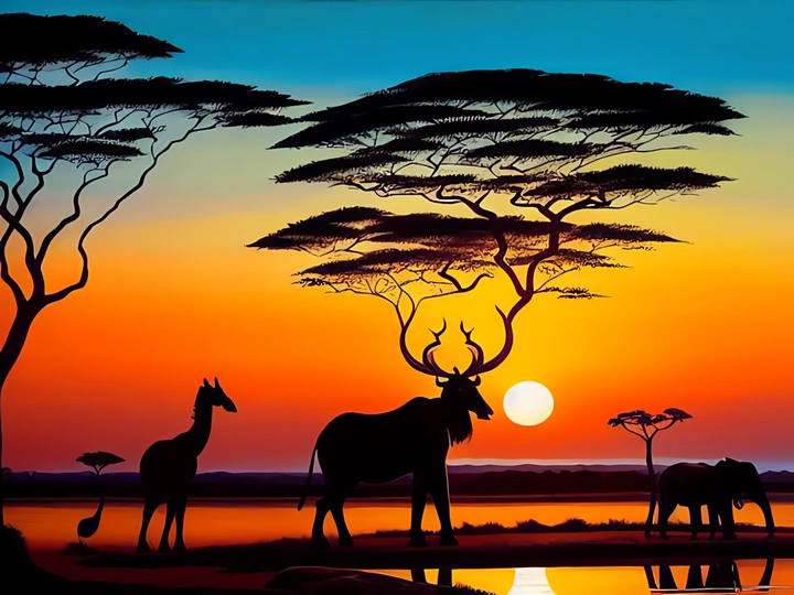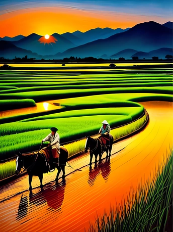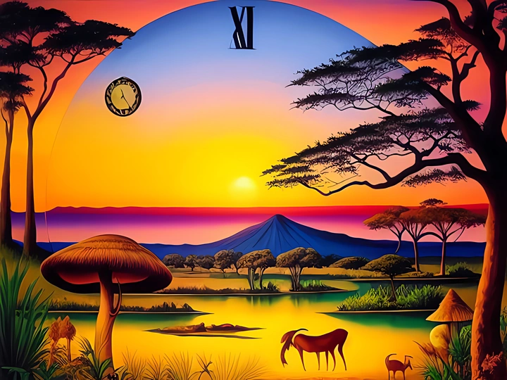 尝试达利(时钟)、毕加索画风,不甚明显。 所画非洲风光中,可能出现四不像动物,不适者捂眼。 一再告之AI ,要有老农扬鞭、耕牛犁田,它就是画马不画牛,宁愿画个破农机来犁田。可能洋人没有水田和牛犁过田,洋软件也莫得法识别。