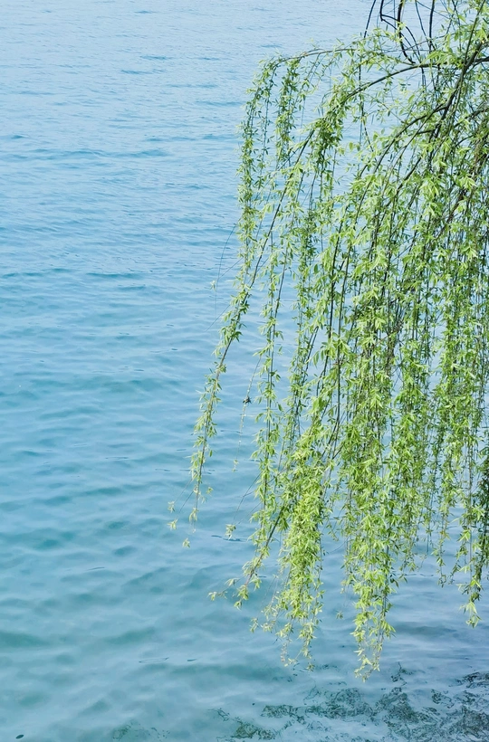 西陵峡口,一缕杨柳垂下江面,三峡的水现在象湖水。高峡出平湖感觉