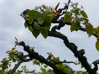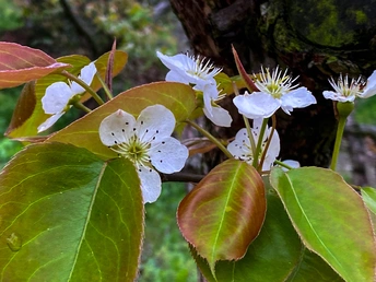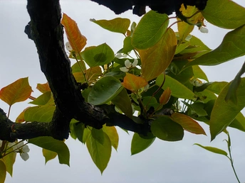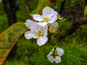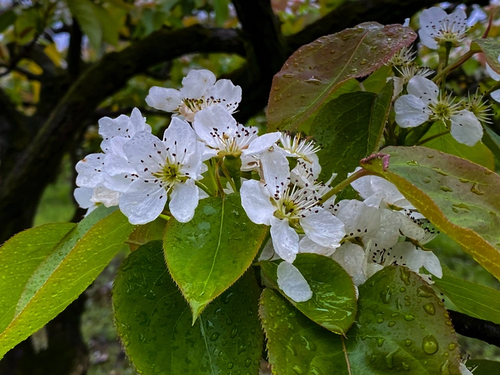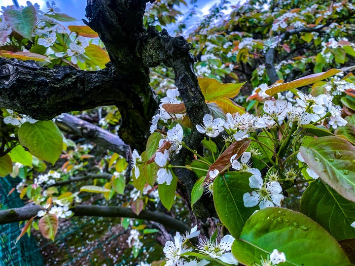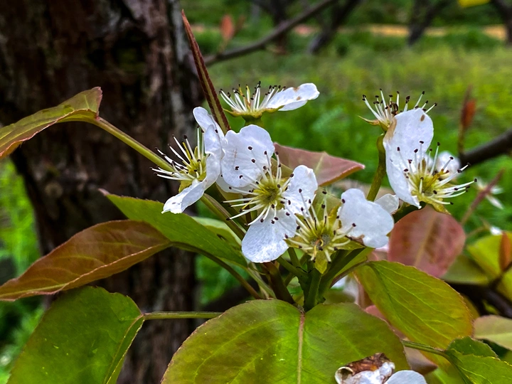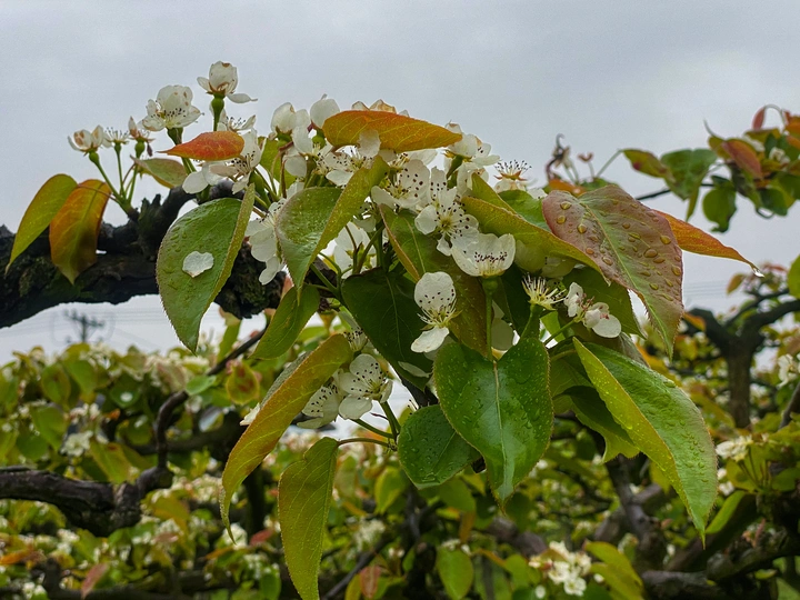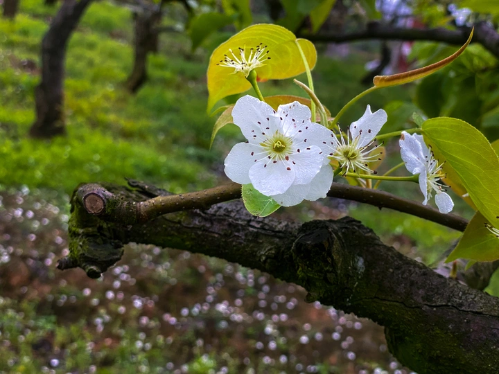 枝头上的朵朵梨花,在春雨中绽放,别有一翻意景。