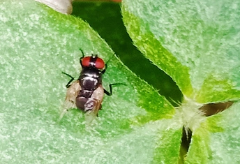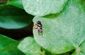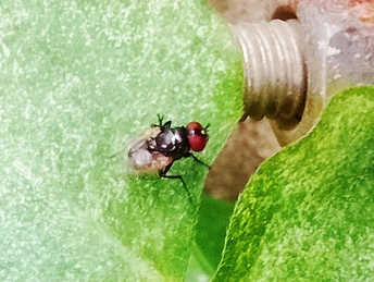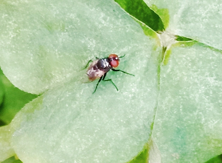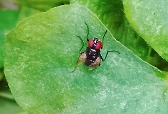 (叶子上)P图过图的 (抓拍,不同的方向,"苍蝇",这"苍蝇",不一样的,它的翅膀,银色,它的身体,全是黑,眼睛,红色,这种"苍蝇"翅膀,很多种颜色,有银色、黄色、透明色,三种不一样的<颜色>哦,原因是,它的翅膀,非常好看的)