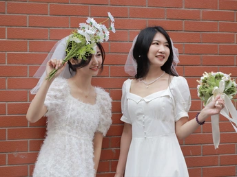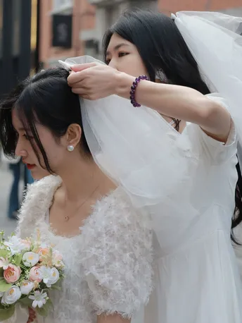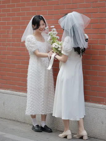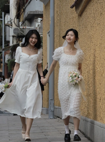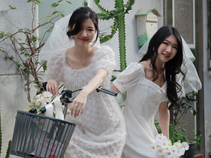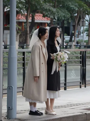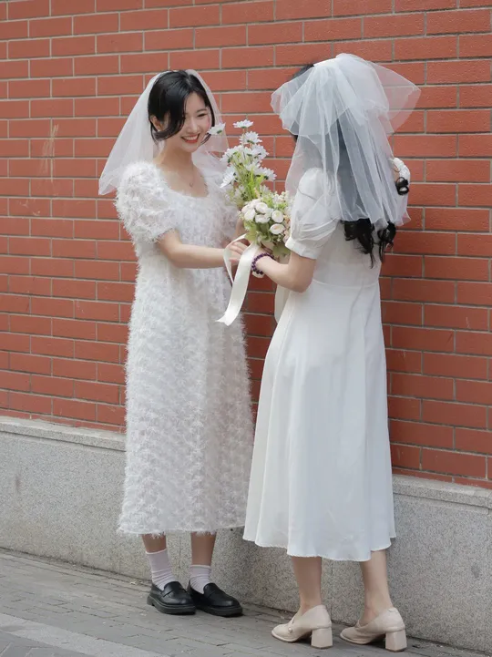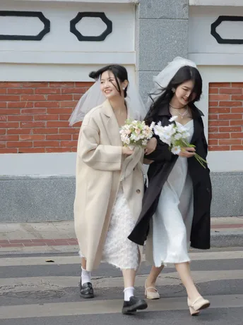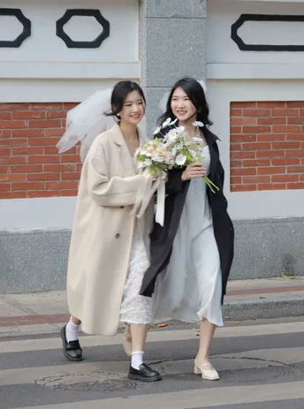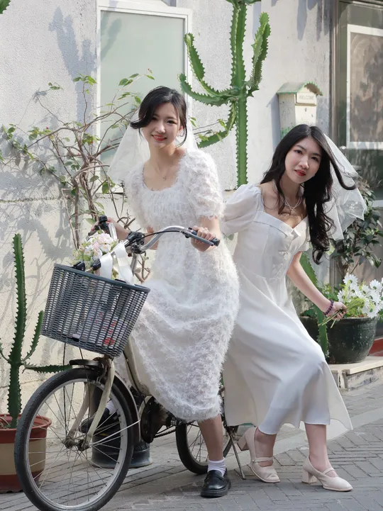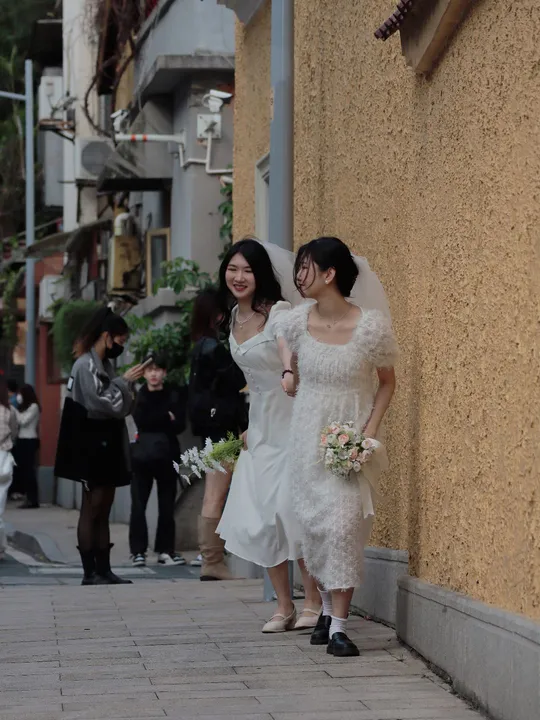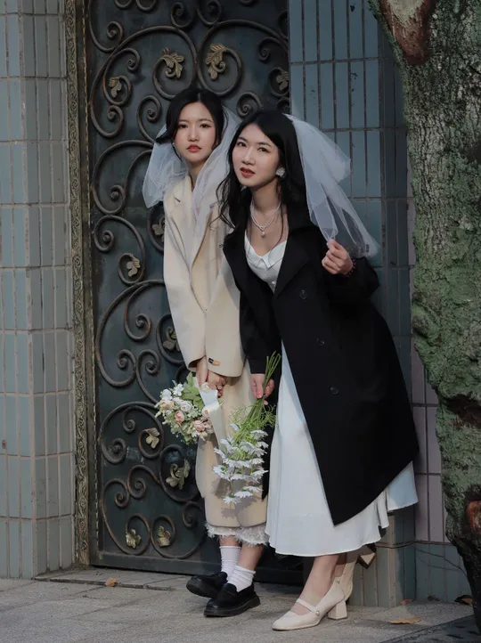 东山口真的太好拍了,复古现代两种风格的建筑搭配起来 当然也有两位小姐姐的配合,其实她们也是第一次见面,不过都不是社恐拍起来就很亲昵~