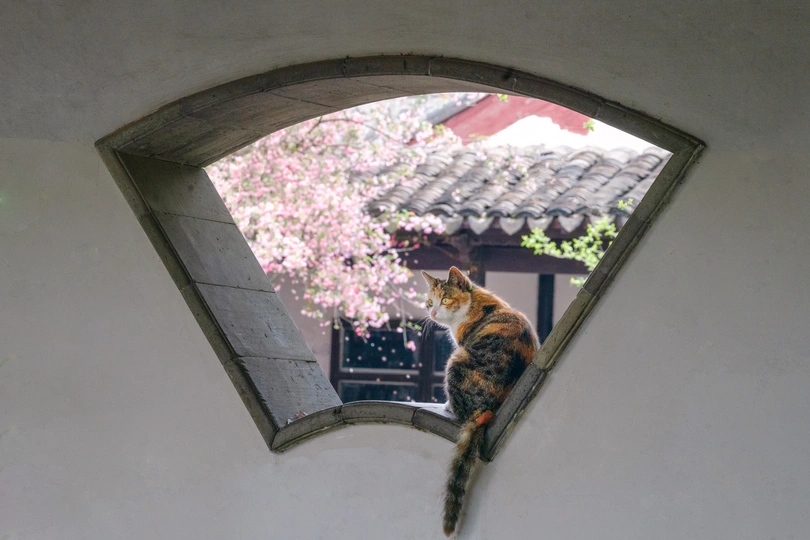 “你站在窗上看风景,看风景的人在楼上看你,海棠装饰了你的窗子,你装饰了别人的梦”。 |卞之琳《断章》猫咪版