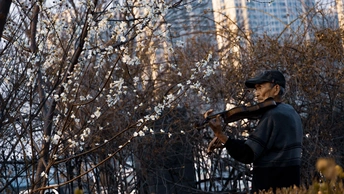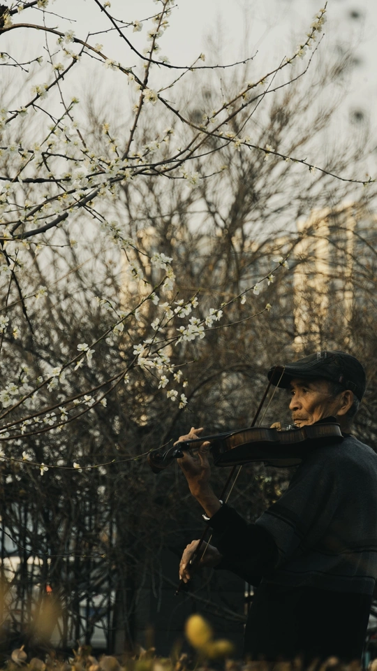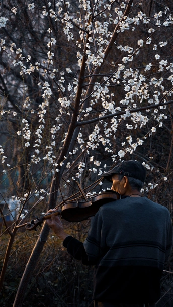 黄昏下偶遇在樱花树下拉提琴的大爷。 真是应了那句"莫道桑榆晚,为霞尚满天"
