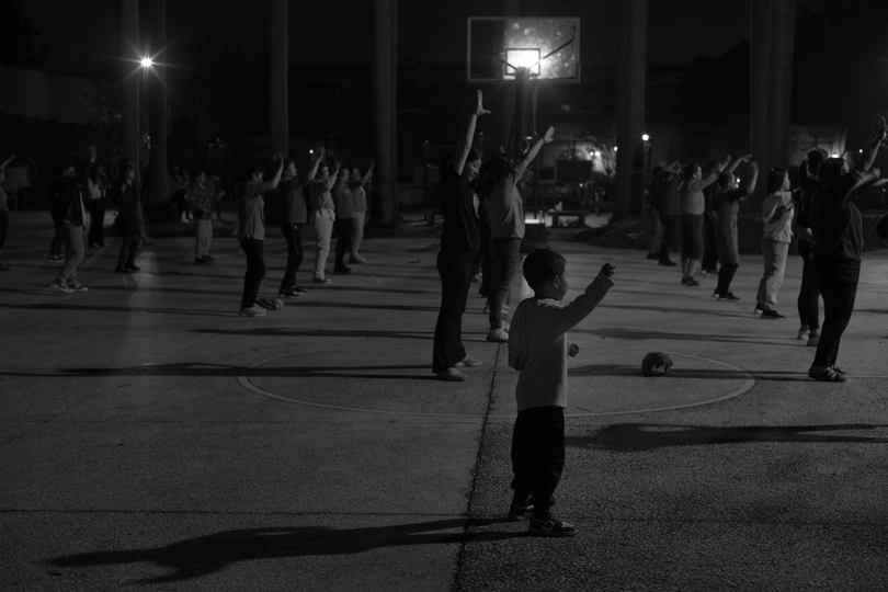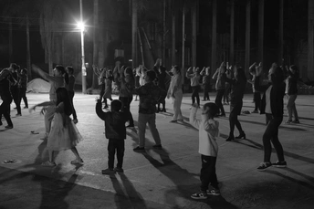 小孩子们和阿姨们一起跳广场舞