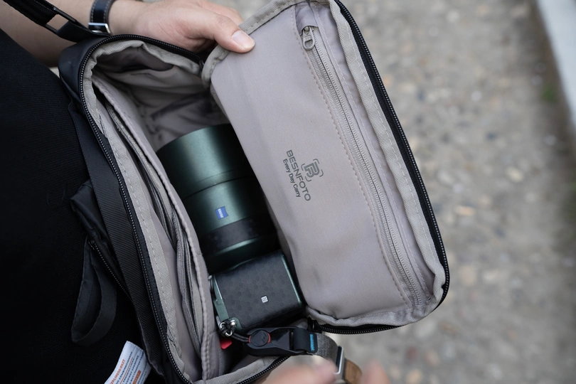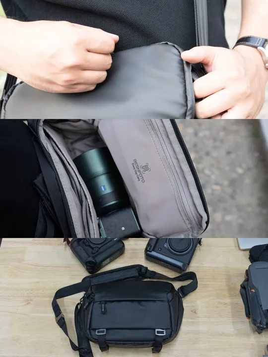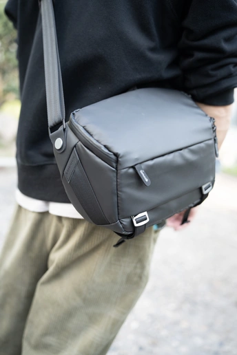 📷佰信推出的这款单肩摄影包型号叫做BN2219,它的表面材质呢,采用了斜纹尼龙和高性能的PU涂层,具有一定的刚性,同时又防水耐磨,这也是作为一款摄影包的基本功能。行业标准的YKK防水拉链,u型的大开口,拿取设备非常的方便。主仓有两块隔板,可以根据不同的器材调整布局,有一说一啊,这个隔板的质量还是相当不错的。这款背包的容量呢是五升,以索尼A74为例,最多可以放下一机两镜,或者像我一样直接一机一镜放入包中,拿取十分方便。如果换成ZV10这样的小微单的话,多放一次镜头也没有问题。 背包前面的口袋是带拉链的,而后面贴身的口袋是磁吸的开口拿去手机等会更加的方便,上侧的提手握感非常的舒适,也可以作为行李箱的绑带来用。作为一款摄影包呢,百姓是充分考虑了它的外挂系统的,它的底部有两条绑带,可以捆绑上一只三脚架。 这款单肩包的肩带连接部分是可以旋转的,能够根据我们的体型和背包的重量调整角度,使得背负的时候更加贴紧躯盖,减少晃动。加上它附送了肩垫,然后自重又比较轻,背负的体验相当不错。 佰信BN-2219这款包的材质、做工,空间的布局,还有背负的体验都是让我满意的。如果你正好需要一款这样尺寸的单肩包,它是非常值得入手的。