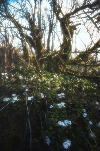 手机的广角在这个场景显得都是那么的局促,前景的花使用两张景深合成,再另外拍摄了四张接片来展现枯树的魔幻。 拍摄设备:vivo x90pro+
