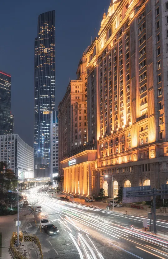 经典的广州东塔机位,使用了五六张照片堆栈,让地面的车轨更加多,体现了一种车水马龙的感觉。