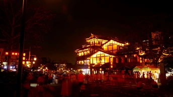 甘坑客家小镇夜晚灯光游客慢门摄影