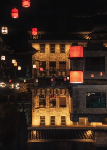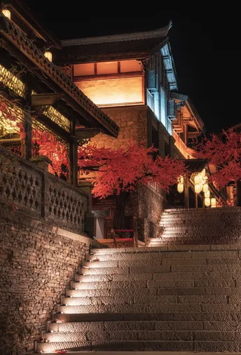 青岩古镇晚上的布置还挺像模像样,有内味儿