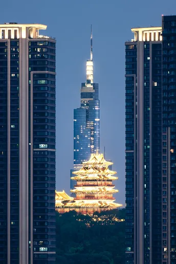 这个机位终于毕业,阅江楼和紫峰大厦双开灯。