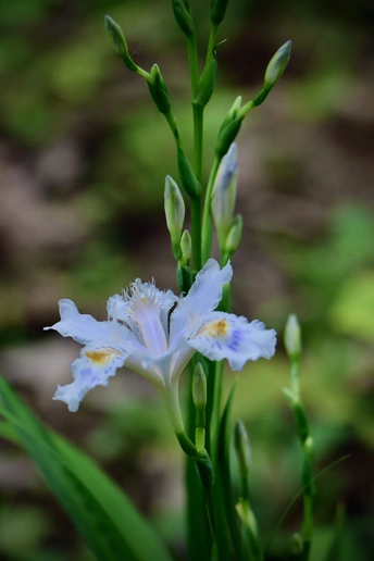 中文学名 扁竹根 别名 蝴蝶花、铁扁担、豆豉叶根 多年生草本,高40-60cm。 根茎横生,竹鞭状。叶片剑形。 其生于山坡较荫蔽而湿润的草地 疏林下或林缘草地。
