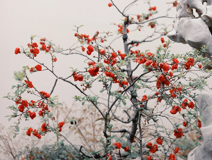 南京莫愁湖的贴梗海棠,美如国画。