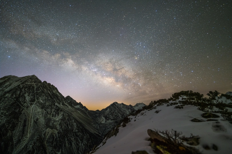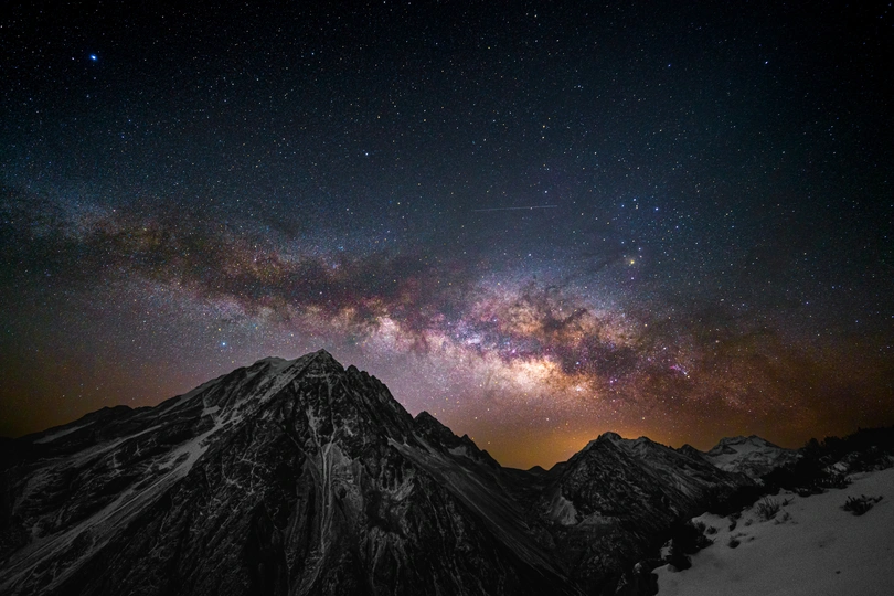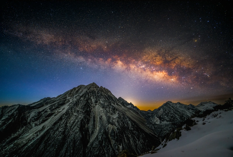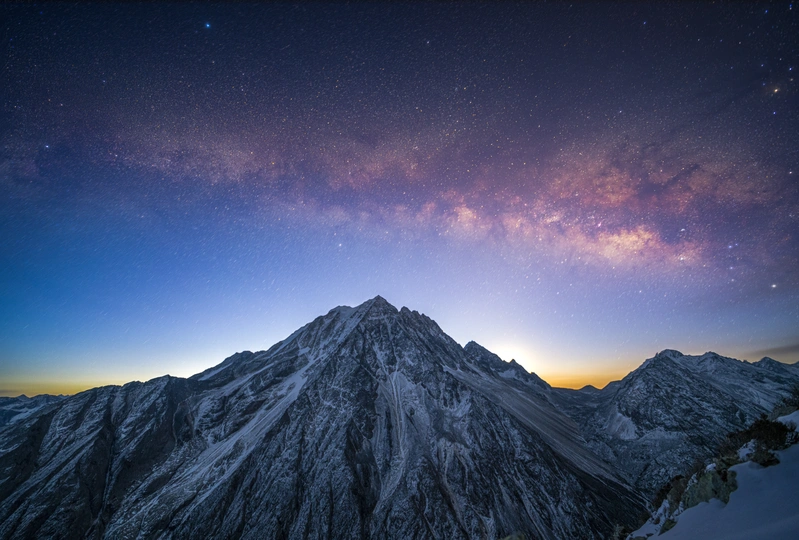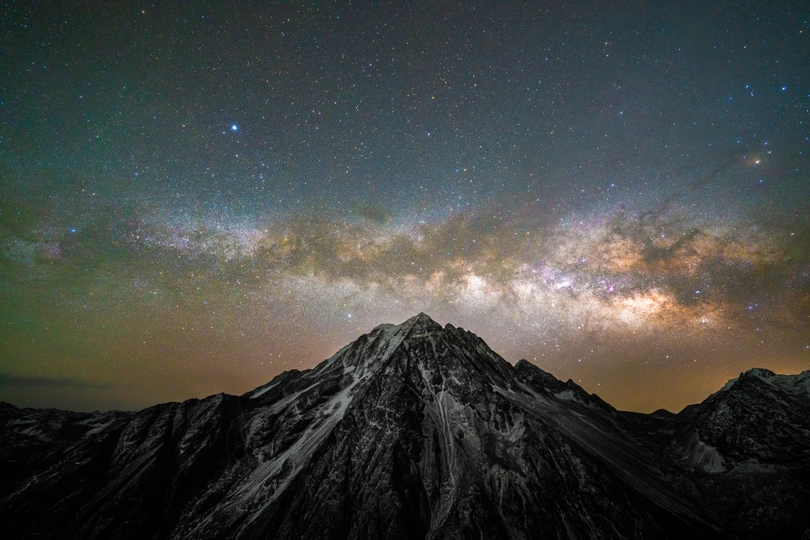 通宵蹲守等来的银河升起,春日的银河下,亚拉雪山犹如戴上了一道星光灿烂的冠冕 2023年2月18日拍摄于川西云绕亚拉观景台,初春时节,银心再次回归夜空,在山顶蹲守一个通宵拍到了今年的第一张银河。 此观景台是距离亚拉雪山最近的观景平台,也是初春季节拍摄银拱全景的绝佳机位,拍摄时,银河升起时间约五点左右,越过亚拉山顶约在五点三十之后,需要足够的耐心和勇气在山上等待拍摄时机。 凌晨五点四十左右银河越过亚拉山巅,开始拍摄,索尼 A7R3+适马141.8,单张曝光25秒,iso3200,光圈1.8,单图由10张图片堆栈降噪,全景图单排7张图片拼接合成获得亚拉银拱全景图一张。需要注意的是,星空银拱接片务必保证每张图都处于水平状态拍摄,否则后期接片将出现极大的畸变,大广角拍摄接片时最好保证每张图与前一张重合率达到百分之五十及以上,方便后期接片合成。