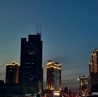 夜幕降临,华灯初上,整个城市夜景刚刚被黑色和略带蓝色的天空笼罩着,这个时候拍出的城市夜景特别好看。