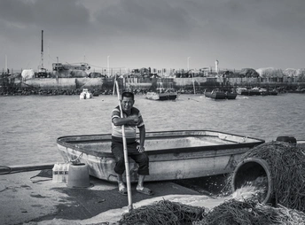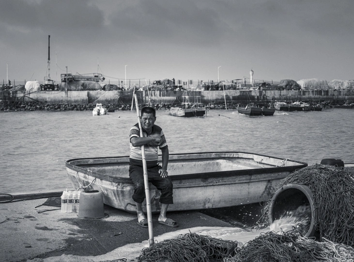 拍摄于连云港高公岛,当时是休渔期,渔民在码头清洗渔网,他们皮肤黝黑,手指粗糙,神情似乎是对这种高强度生活的无奈。