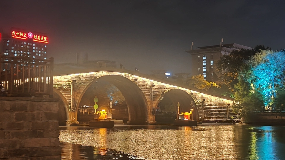 在杭州京杭大运河有座拱宸桥,也是杭州古老的桥梁。那里有着古镇的韵味,夜景也很美,生活也是丰富多彩。
