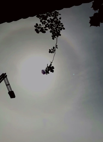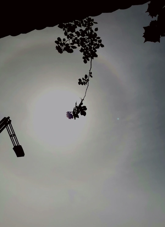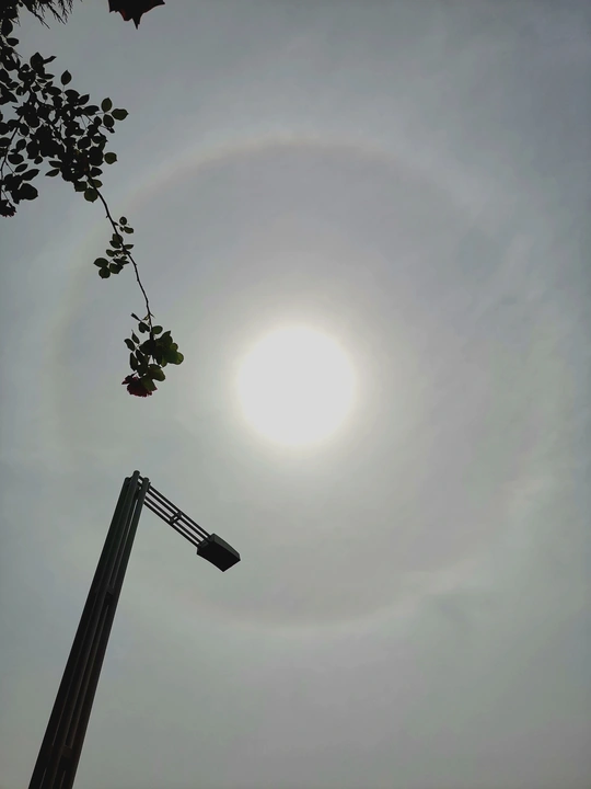 挺幸运的,外出买东西,偶尔抬头想看看天空是否多云,却看到了罕见的日晕景像, 也的确是有一层薄薄的白云覆盖着本该耀眼的太阳,才能让我看清楚并用手机拍下了日晕。