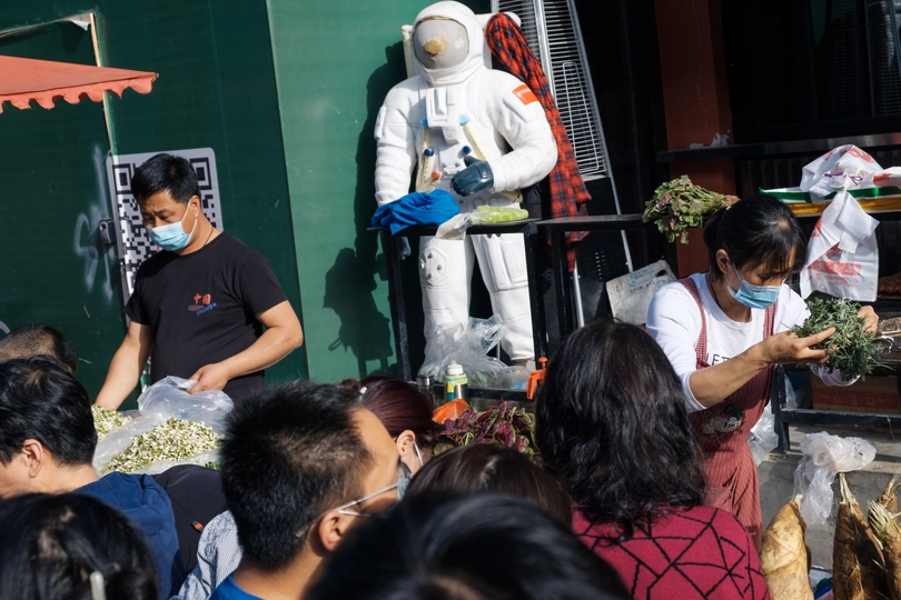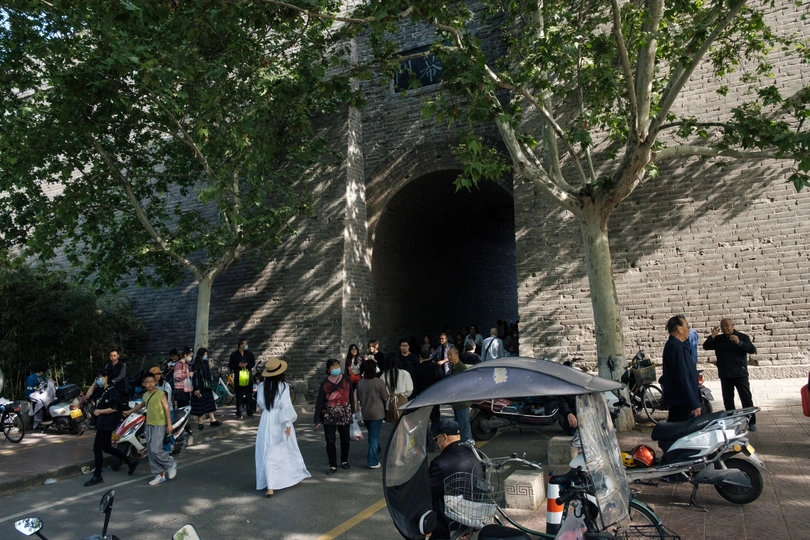 小南门又叫勿幕门,位于朱雀门与含光门中间,这里的早市我几年前就拍过,也拍过很多次,这里的早市是每天6-9点,一到8点多就走管理员拿着喇叭重复播放,时间到了快收摊。以前这里都是附近居民来这里买菜,是便民集市,人不算多,不知为何最近火的一塌糊涂,我7点多到已经人挤人,水泄不通,可能是网络带火了,有不少大学生。本来都是中老年逛的集市一下涌入很多年轻人,让这个集市成了网红打卡地。