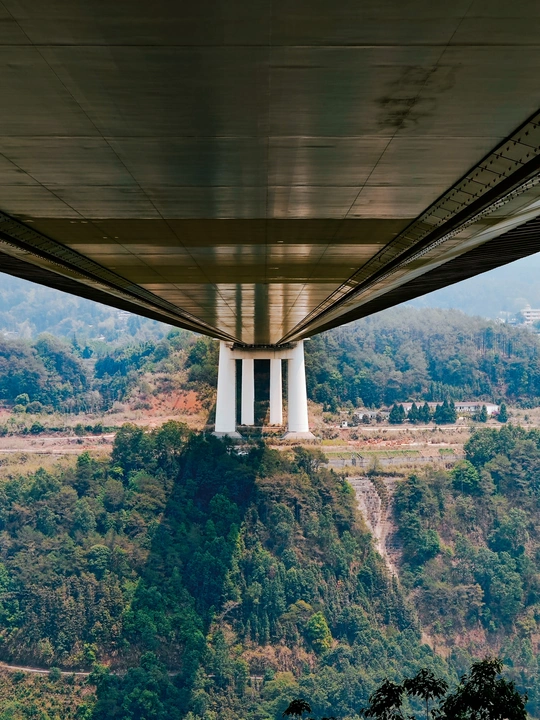 从云南腾冲通向保山市高速公路上的龙江大桥。拍摄爱好者不能上公路正面拍摄,只能从别的角度展现大桥的雄姿。