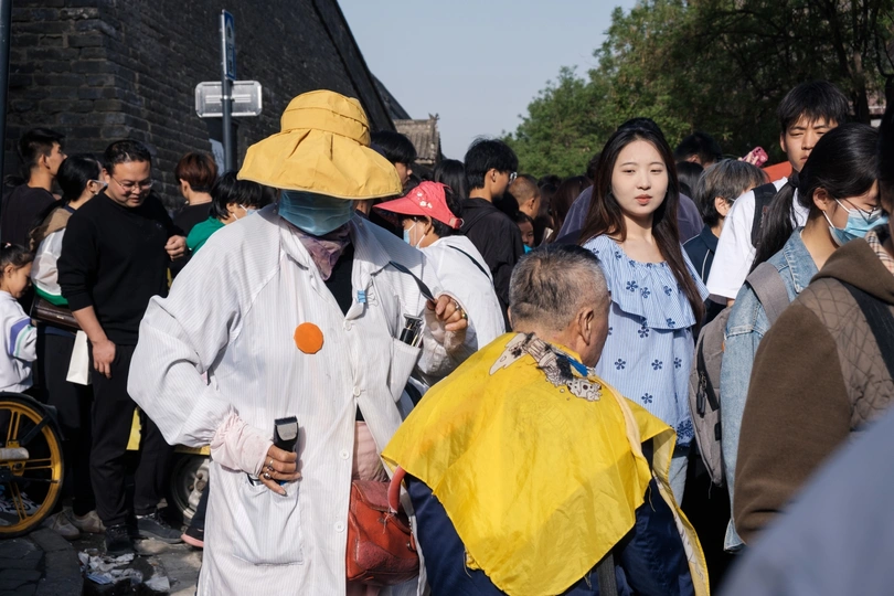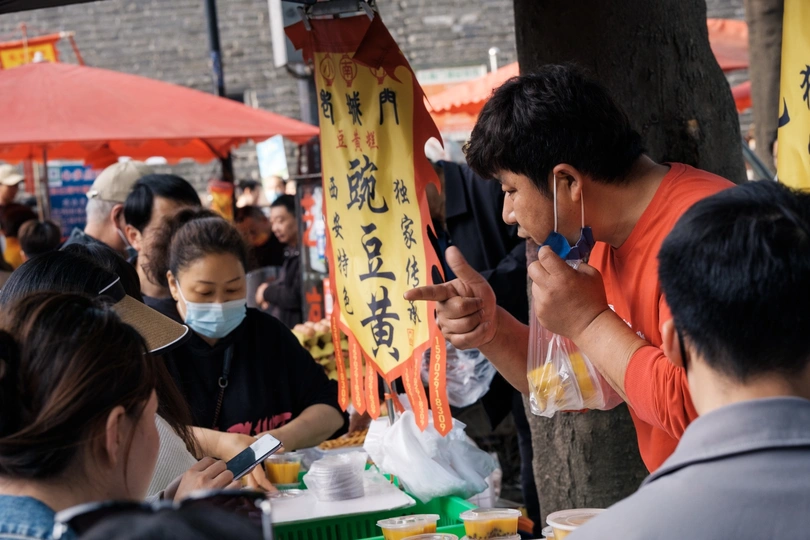 小南门又叫勿幕门,位于朱雀门与含光门中间,这里的早市我几年前就拍过,也拍过很多次,这里的早市是每天6-9点,一到8点多就走管理员拿着喇叭重复播放,时间到了快收摊。以前这里都是附近居民来这里买菜,是便民集市,人不算多,不知为何最近火的一塌糊涂,我7点多到已经人挤人,水泄不通,可能是网络带火了,有不少大学生。本来都是中老年逛的集市一下涌入很多年轻人,让这个集市成了网红打卡地。