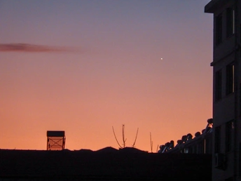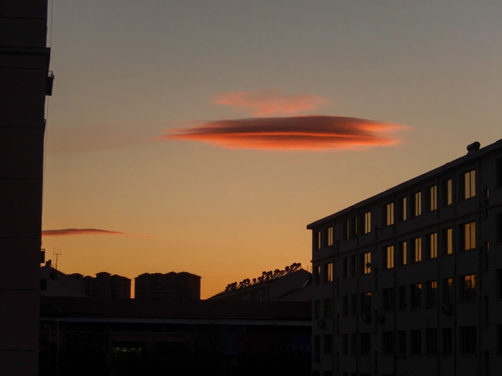 夕阳渐渐西沉,艳丽的晚霞像打翻的调色盘一般,一下子翻在了天空上,西边蔚蓝色的天空被鲜艳的大红色染红了,仿佛是一块块鲜红的幕布一样压了下来。