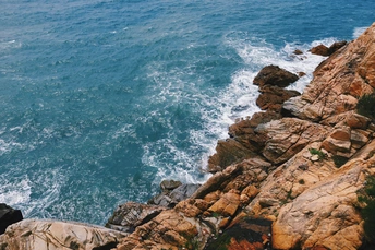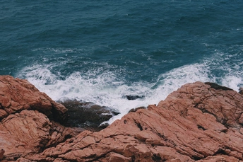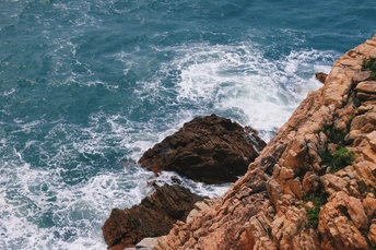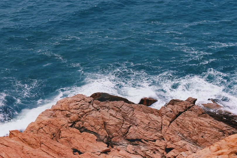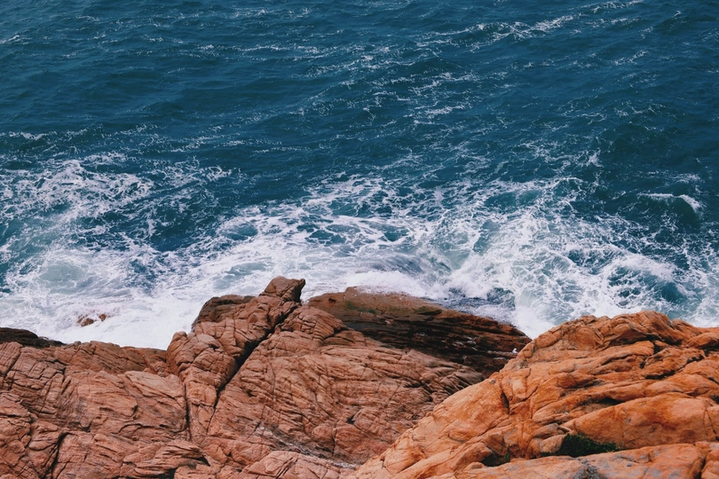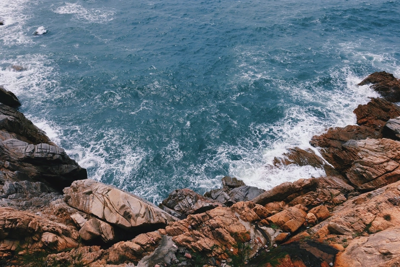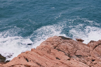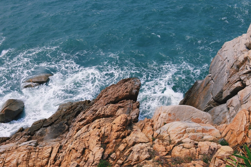 海边浪花不断敲打礁石,在礁石上勾勒出了不同的形状@米拍社长 @米拍@米拍编少