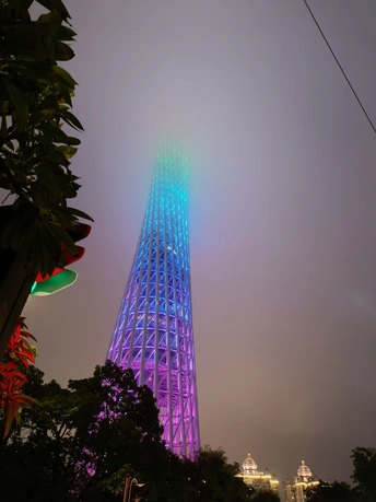云雾天的小蛮腰只有腰 #广州塔 #小蛮腰 #夜景 #广州 #云雾 #灯光 #夜景