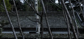 帘斜树隔锁清秋 五架三间新草堂,石阶桂柱竹编墙,寻古觅幽处古静幽寂时