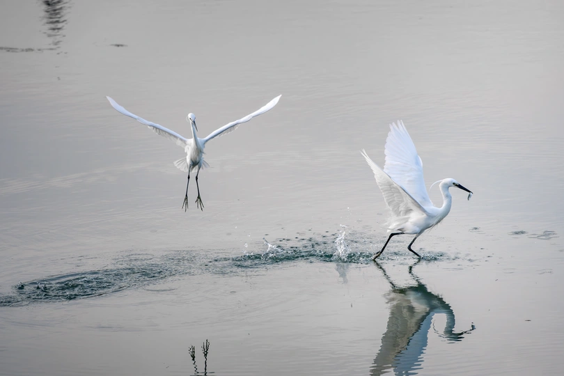 二鸟抢鱼