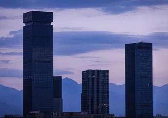 雨后的林立的高楼和缝隙中的远山心旷神怡