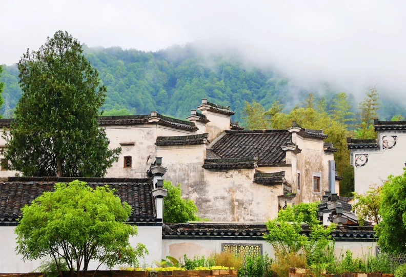 西递古村之美,美在烟雨蒙蒙之中 暮春时节,采风游览在安徽黟县,当行走游览至黟县西递古村之时,下起了阵阵蒙蒙细雨 烟雨之中,西递古村意境更浓了,远山被浓浓的山雾所包裹,近处则是古色古香的黑瓦白墙。 从近到远,形成了一幅动人的画卷