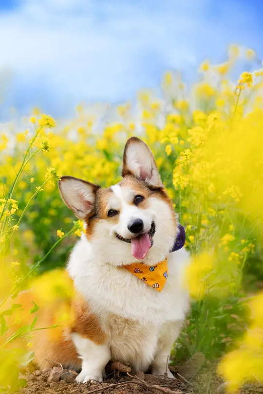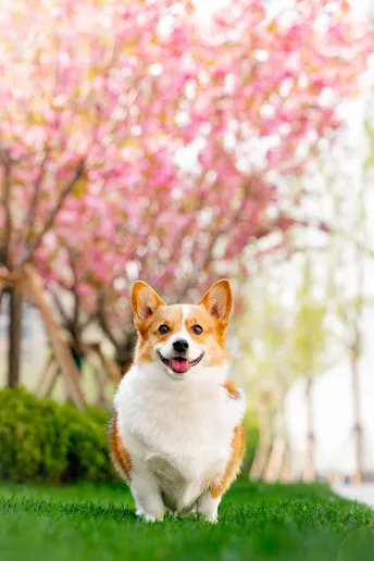 在春天给这对柯基小情侣拍一组写真