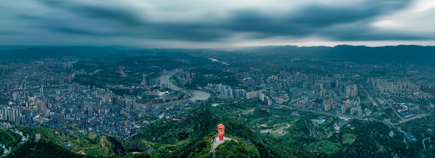 天气预报天天说要下雨,我等了好多天的雷暴迟迟不来。我在宿舍楼顶起飞无人机,看到主城区以西全是黑云。黑云压城城欲摧,我拍下这张照片。以凤凰楼地标为视角,瞭望整个达州城