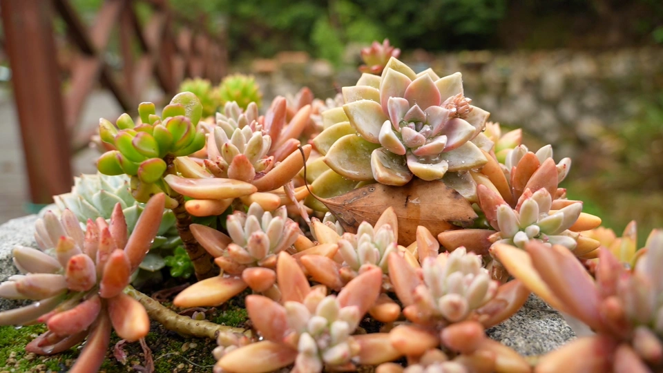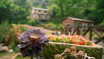 大早上起来摔了一跤得到的结果。起个大早,摔个屁墩。多肉旁边是有一条小溪的,忘记了清晨露水的威力,以为自己能够稳稳的站在布满青苔的石头上,差一点掉到溪水里,原本想着把机器往岸边一丢我直接跳到水里好了,调整了一下,还是爬上来了,弄了一身脏,蹭破了点皮。 拍摄的地点是在山的西面,清晨太阳还没晒到,山谷里满是雾气,旁边就是我们前一晚住的小木屋和小石头房,晚上下了一夜的雨,小小多肉还在睡觉💤