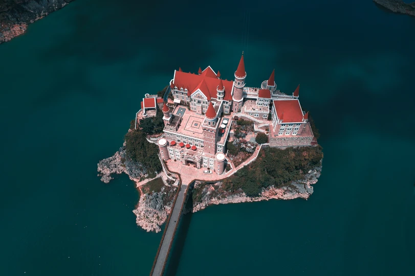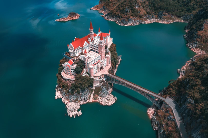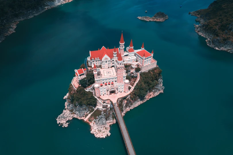 吉隆堡坐落于贵州省黔西南兴义市万峰湖上的一座小岛上,四周全是茂密的森林与农家,城堡本身的鲜艳红色与周围的青山绿水形成鲜明对比,夏季晴朗时分,万峰湖在阳光下如同一块翠绿的宝石,与鲜红的吉隆堡形成鲜明对比,堪称喀斯特王国中的魔幻城堡。