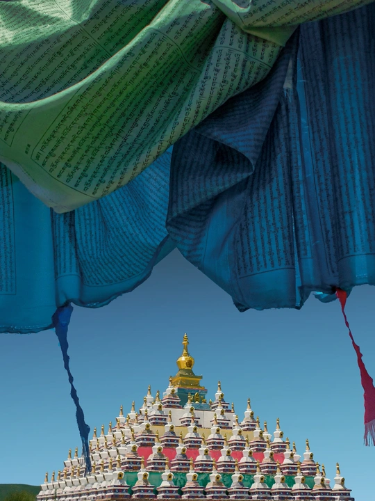 肃穆的圣塔在经幡的环绕下格外庄严,四野一片寂静。