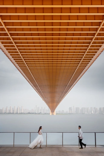 在拍摄杨泗港大桥的时候,架好脚架在等待着一个场景,突然来了一对夫妻拍摄婚礼照,大桥俩边双向奔赴,有幸见证了一场浪漫的婚礼。@THEO19 @SEEKER丨倾斜的地平线 @米拍