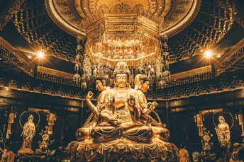舟山观音圣坛,非常的宏伟,走进去的一瞬间,仿佛被净化了一般,清净而有神圣,非常震撼