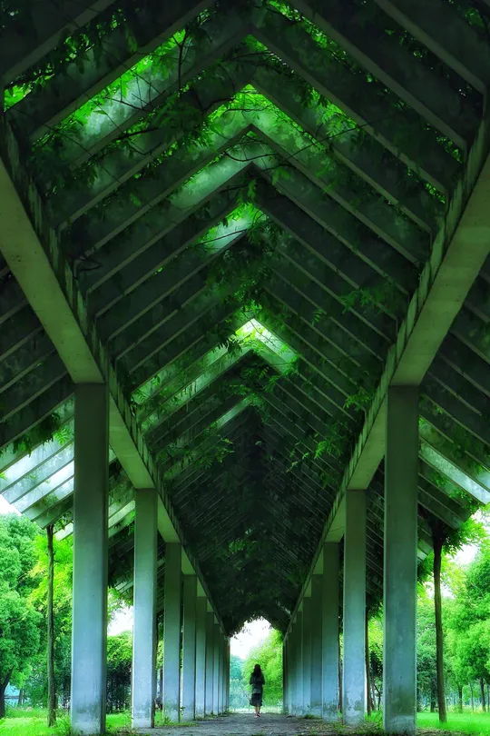 嘉北郊野公园爱情角的紫藤花架,盖满了紫藤,夏天的风吹过,悠,凉!