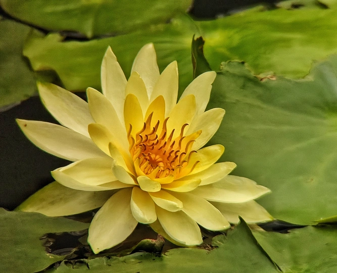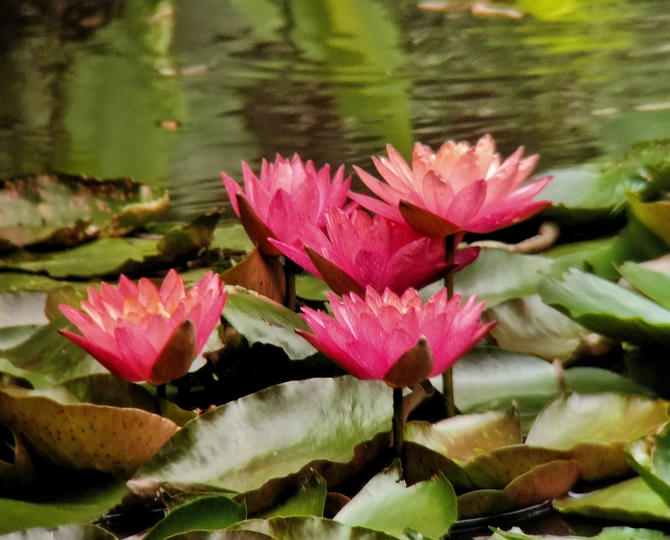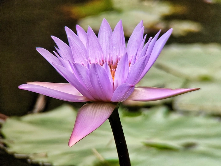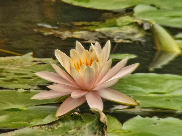 粉嫩的睡莲伸着懒腰,敞开双臂,睁开朦胧的睡眼,向世界展现她灿烂的笑脸。