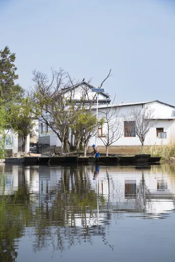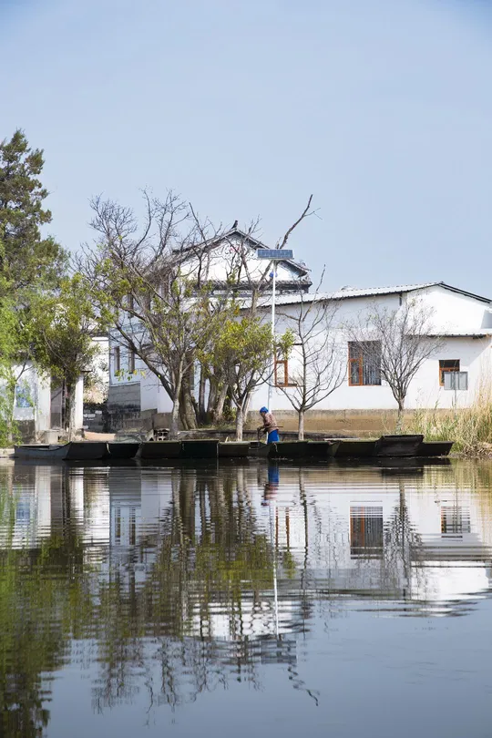 大理也有个西湖,是不同于杭州热闹氛围的都市西湖,是个非常安静祥和的湿地西湖。 被博主们航拍的大理西湖吸引,3月中旬便去体验了一番,大理西湖的景区门票35元(包含船票)。的确也是一个只能泛舟于湖上的旅游景点。 旅行途中,有听到有的游客说桂林的游船没有意思,因为是电动的,没有体会到仙侠剧的感觉。那来大理西湖,泛舟体验可谓是美妙的。一艘小舟,由当地少数民族阿嫲撑竿,和游客随意聊着当地的生活。我带着母亲,是早上10.30左右到达的,景区没有其他游客,偌大的湖上只有我们一艘小舟,湖面十分平静,看着野鸭子展示它们的水上漂功夫,感到惊喜。由于是3月份,还有一些干枯的植物和枯木,再伴随着白族小屋倒影在湖面上,形成别致的风景,希望下一次我可以有躺在小舟上在大理西湖做白日梦的体验