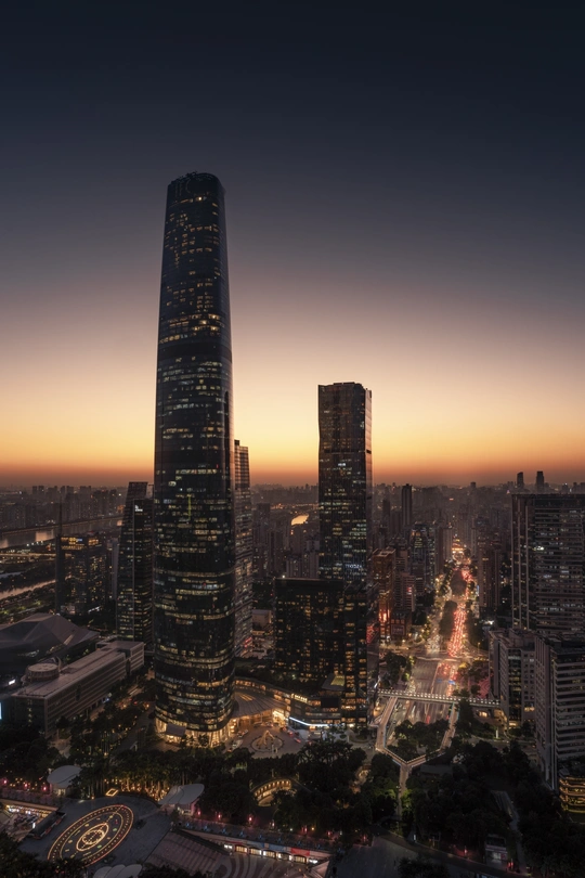 西塔和富力中心上映着落日的余晖,华灯初上,遍地金色流淌。@米拍小助手 @米拍社长 @Min铭皓