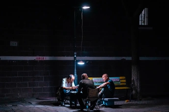 2022 年 9 月 16 日 23:15 北京一居民区 惊现三位大爷在微弱路灯下斗地主 怕不是要决战到天亮? 爱好可以,但身体才是第一位
