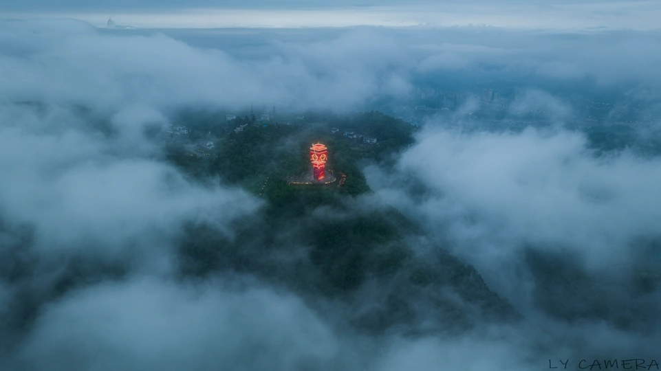 饭后看着宿舍看着雾气四起,无人机飞上去来一张